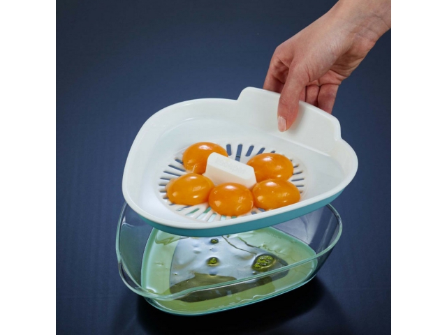 żółtka. Z kolei dolna miseczka pomieści, aż 10 jajek (ok. 350 ml), a